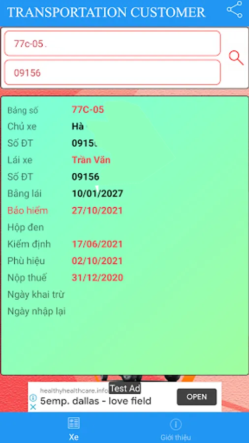 Customer's vehicle information search program in Rang Dong Transportation Cooperative