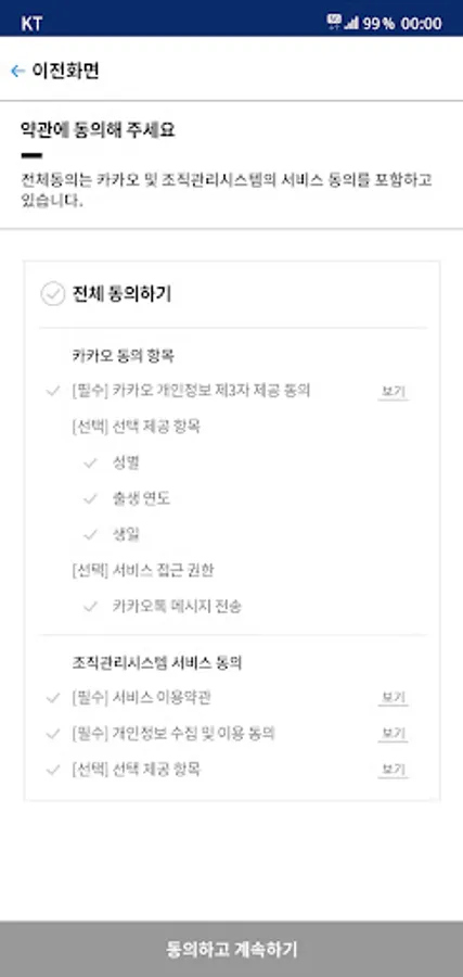 카카오톡 사용 동의 : 로그인 및 카카오톡을 통한 메세지 발송을 위하여 사용