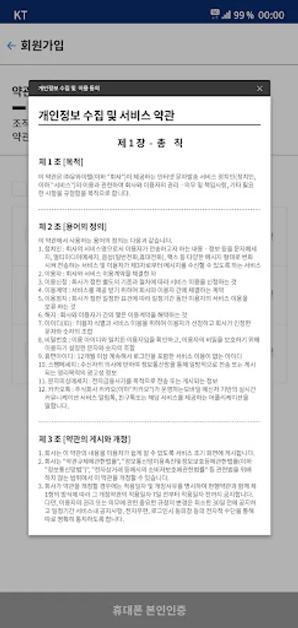 핸드폰 연락처 : 카카오톡 정보와 연락처에 정보를 연동하여 조직원 선별에 정확석을 높이기 위해 사용