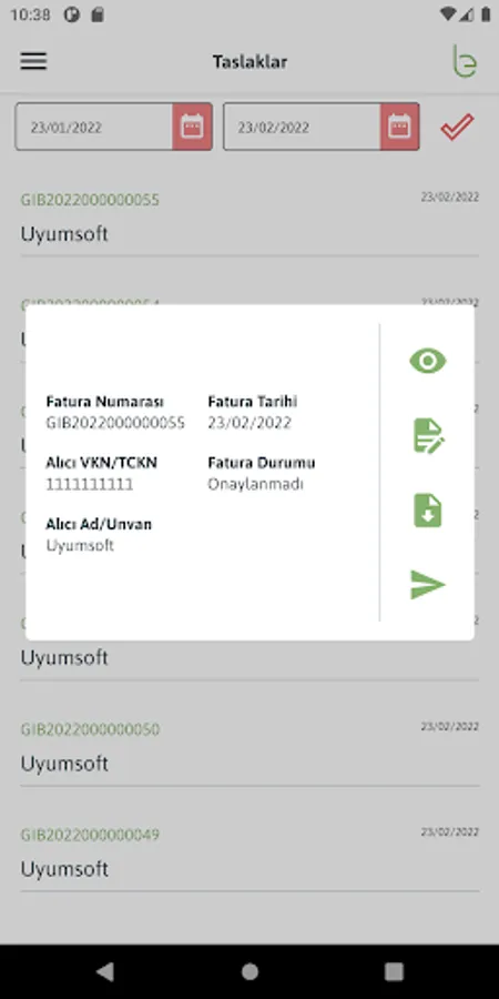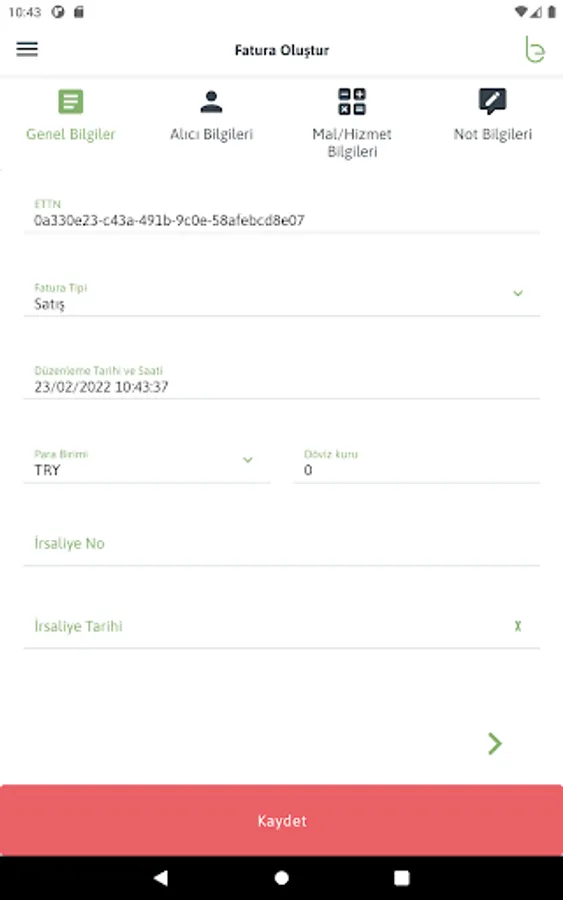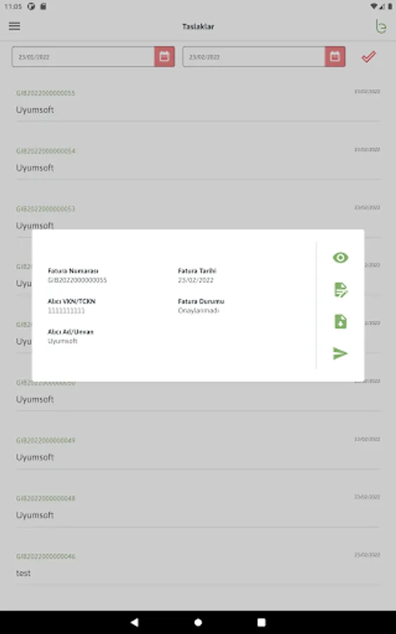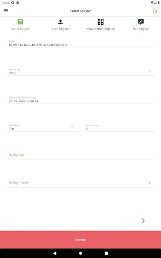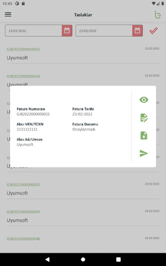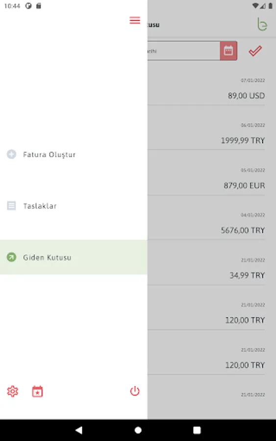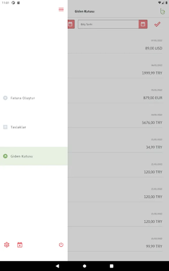 You can create, save and send invoices through the application. You can list the documents you have created and saved on the draft screen, and additionally view, edit, download, send, etc. You can list the invoices you have signed and sent on the Outbox screen. You can track your sent invoices on this screen and send, view and download them via e-mail to the recipient. You can also integrate with your RA e-Archive portal user through the application.