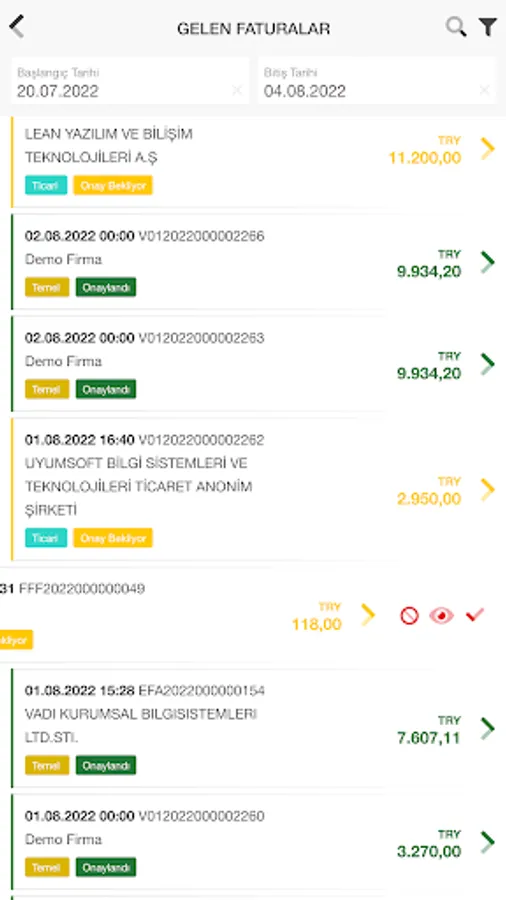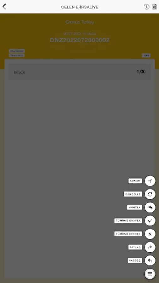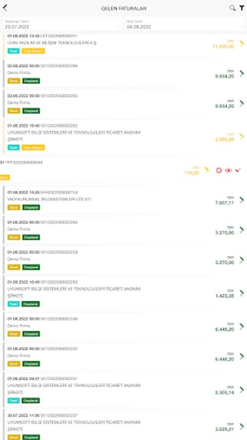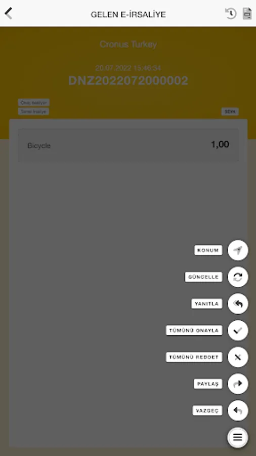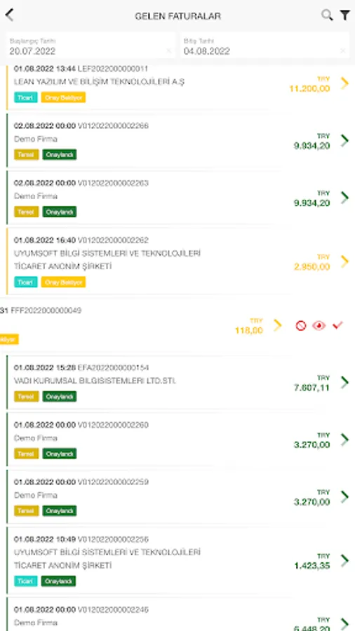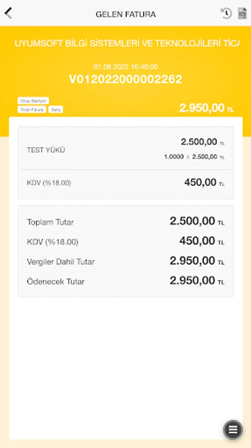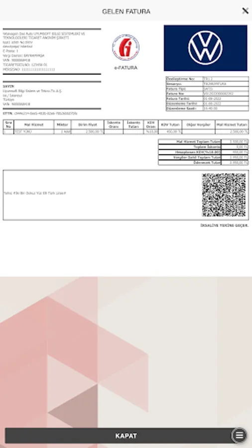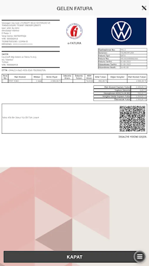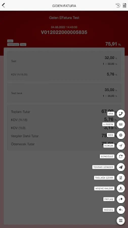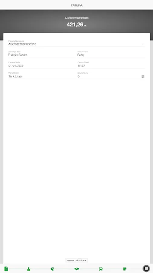 You can now manage your e-Documents quickly and easily with ePay Mobile. You can create and edit e-Invoice, e-Producer receipt, e-Self-employment receipt and e-Waybill through the application. You can query your e-documents, view their details, original designs and examine their logs. You can send acceptance / rejection responses to your invoices quickly, and you can quickly search, send e-mail, view the website, go to location with the information on it.