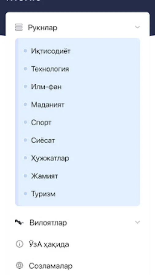 O'zbekiston Milliy axborot agentligi davlatning yagona rasmiy axborot agentligidir. O‘zA orqali siz rasmiy xabarlar, Prezidentning farmon va qarorlari, Hukumat hujjatlari, O‘zbekiston va jahonda bo‘layotgan tezkor yangiliklar, tanqidiy-tahliliy materiallarni o‘qishingiz mumkin.