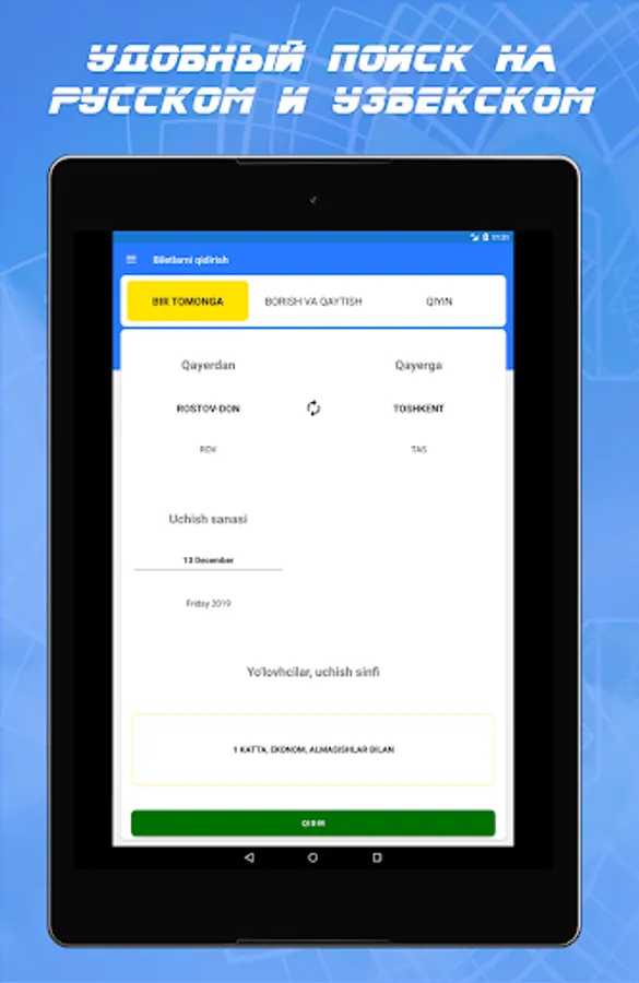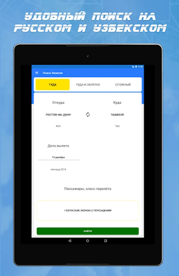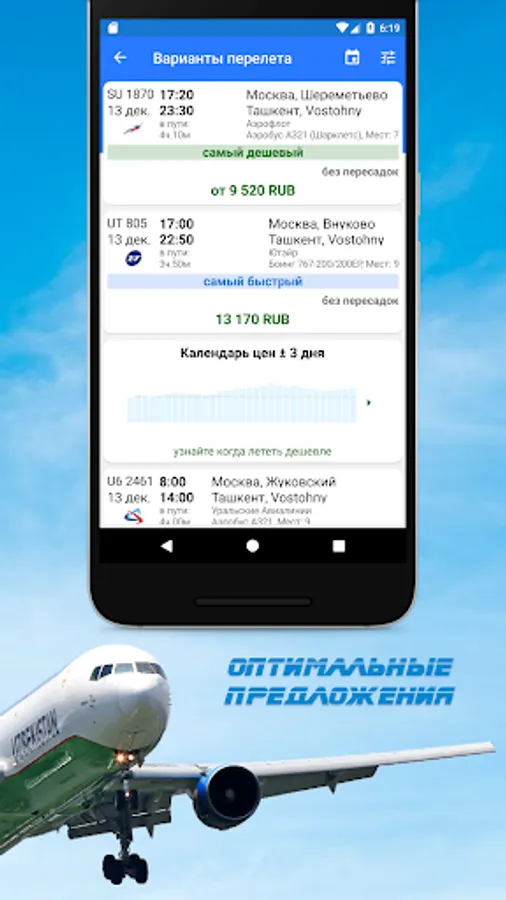 The most advantageous offers of more than 700 Russian and foreign airlines are also available to you. You do not have to spend a lot of time searching and booking tickets - filters and sorting will help you find a ticket. To find a comfortable Uzbekistan plane, you can search by time of departure and arrival, flight duration, airports, transfers and, of course, by cost. If you like a Tashkent airline aircraft of a particular airline, use the filter. < / strong> Once you’ve made your choice, you’ll see a list of suitable offers. With us you can not only book a ticket for Tashkent from the Uzbek airline, but also immediately buy it.
