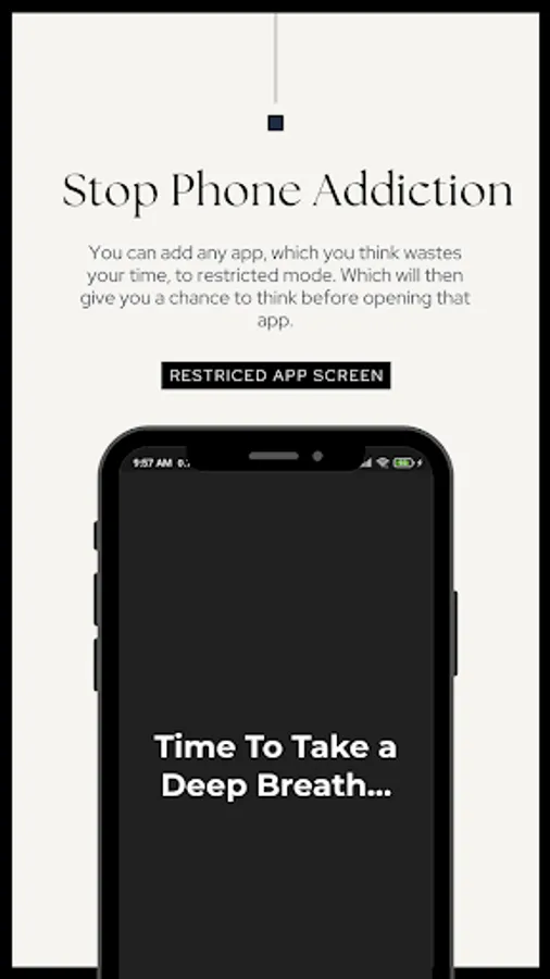 📱 Take Back Control: Say goodbye to time-wasting apps! Essential empowers you to restrict and reconsider access to those culprits. When you try to open them, the app encourages mindfulness by guiding you through a calming breathing animation.
