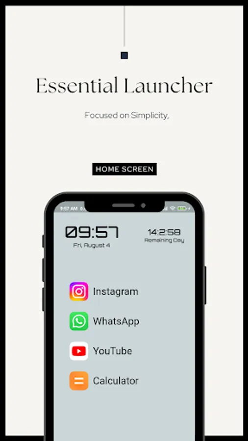 🌟 Master Your Time, Master Your Life: Empower yourself with Essential - The Minimal Launcher. Download now and embrace a more mindful digital lifestyle! Take control, enhance productivity, and unlock your true potential! 🌟
