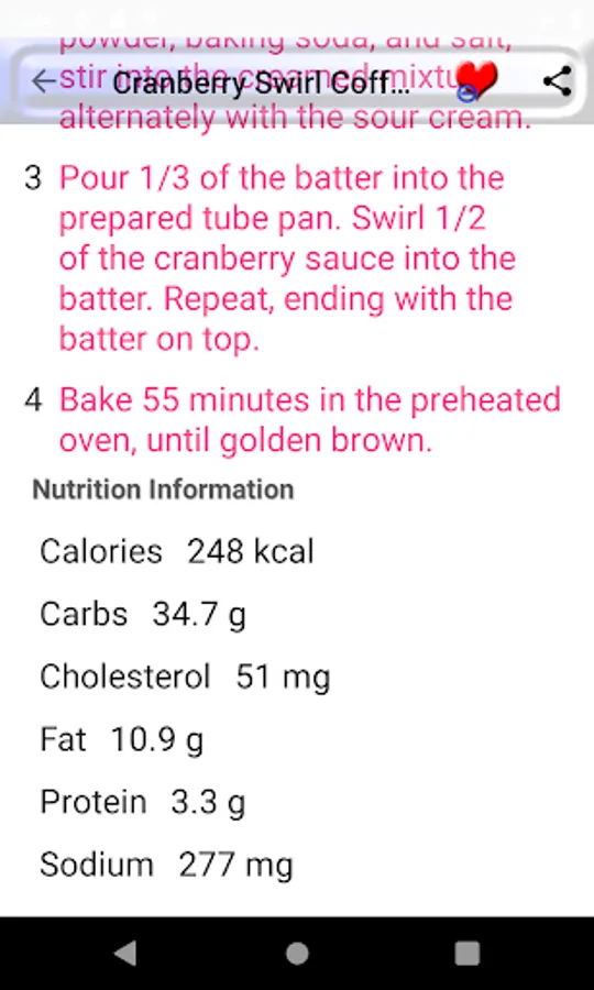 3. recipe nutrition information