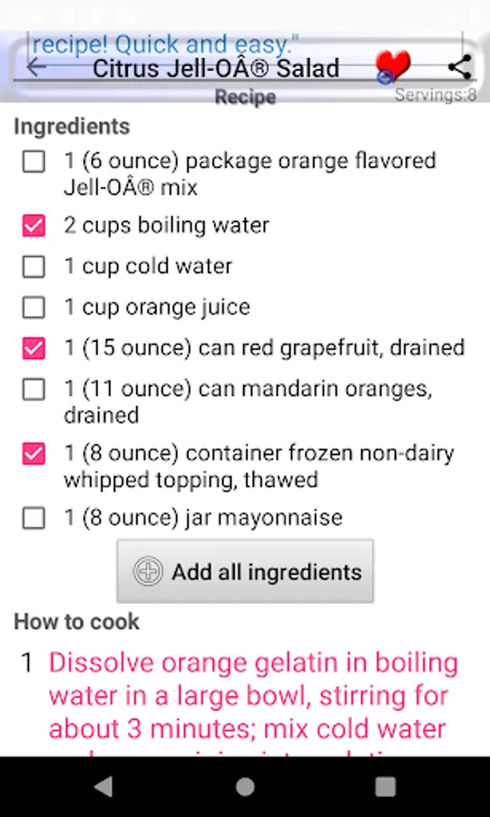4. ingredients shopping list with check box.