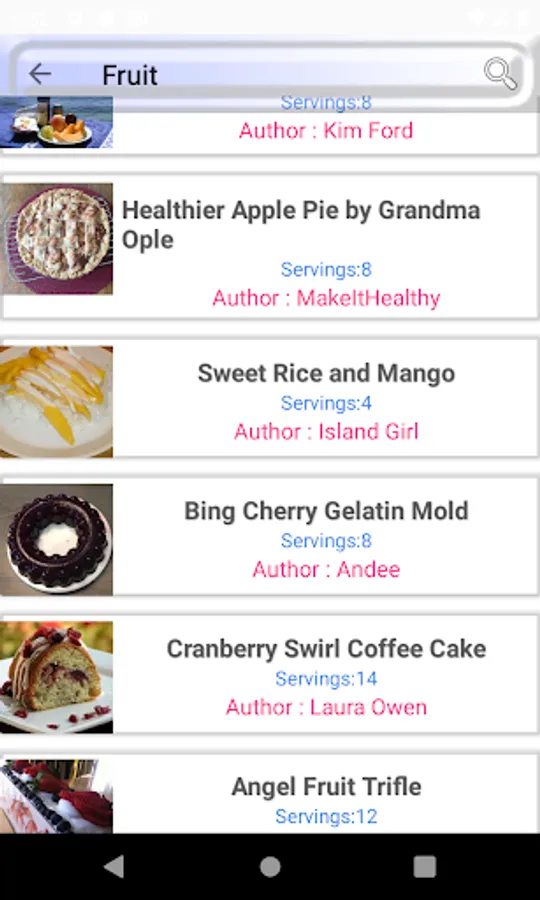 Fruit Desserts recipe give the opportunity to get their wanted food easily. make a favourite recipe list. The functionality of the app is checked with popular android devices.