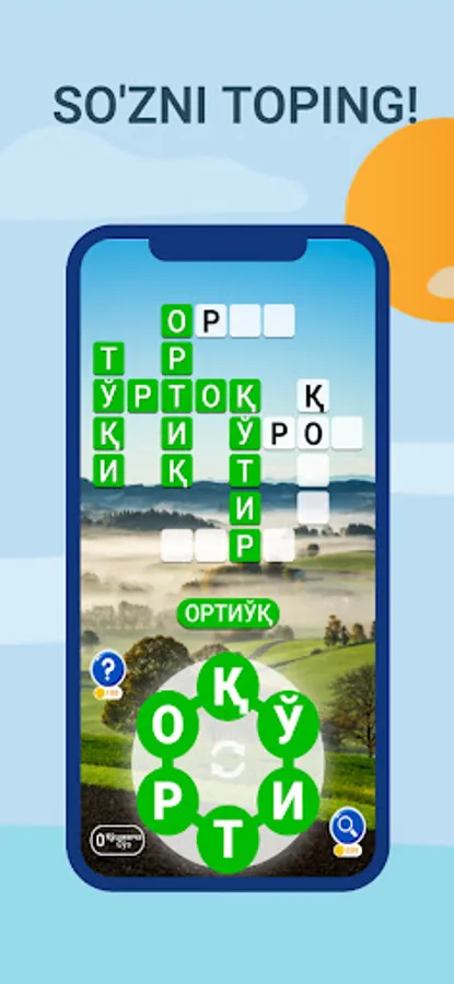 Сўз топиш ўйини сўз бойлигингизни оширади. Сўзларни топиш учун сиз миянгизни ишлатишингиз керак. Миянгизни яширин сўзларни топишга ўргатинг. Ўйинда бир неча минг сўз ишлатилган. Сизнинг интеллектингизни оширади.