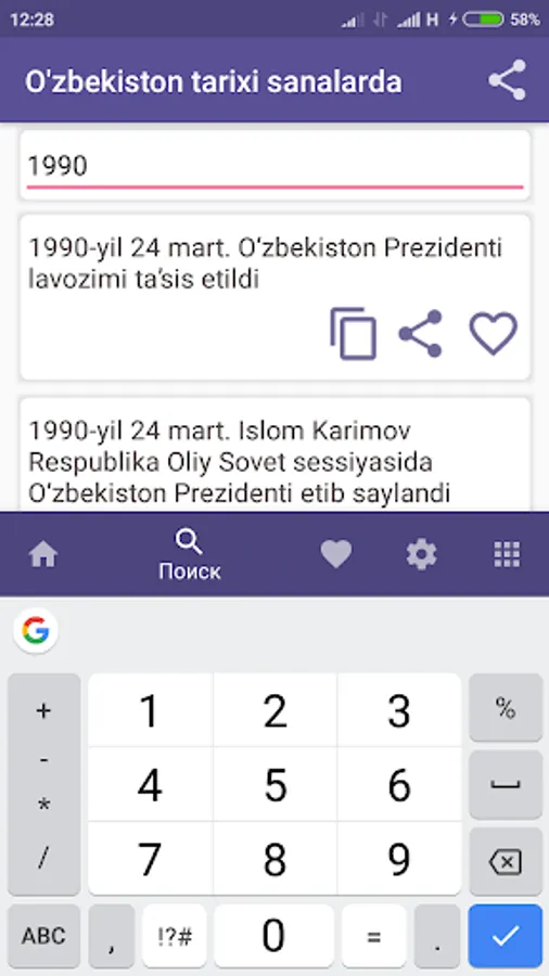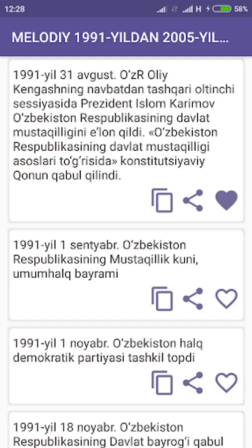 O'rta Osiyo, Mustaqil O'zbekiston, tarixiy sanalar