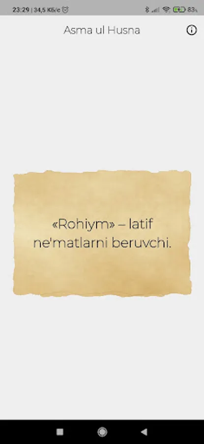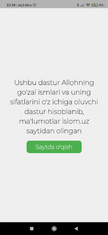 Ushbu dastur Allohning go'zal ismlari va ularning ma'nolarini o'zida saqlovchid astur bo'lib, ushbu ismlarni osonroq yodlab qolish uchun ishlab chiqildi. Ma'lumotlar islom.uz saytidan olindi