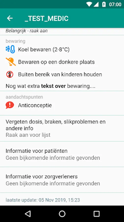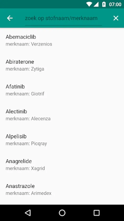 Of all products registered in Belgium you will find the brand and substance name, the type of therapy, the current indications, the schedule and the intake instructions. Patient-driven interactions, drug-related interactions, possible side effects and points for attention are also mentioned. You will also find the link to UZ Leuven's patient information and to the package leaflet.