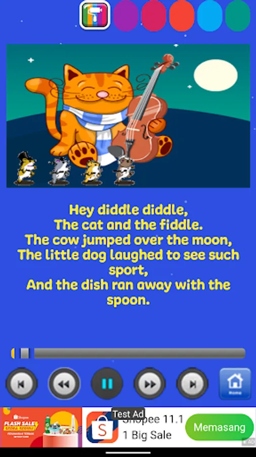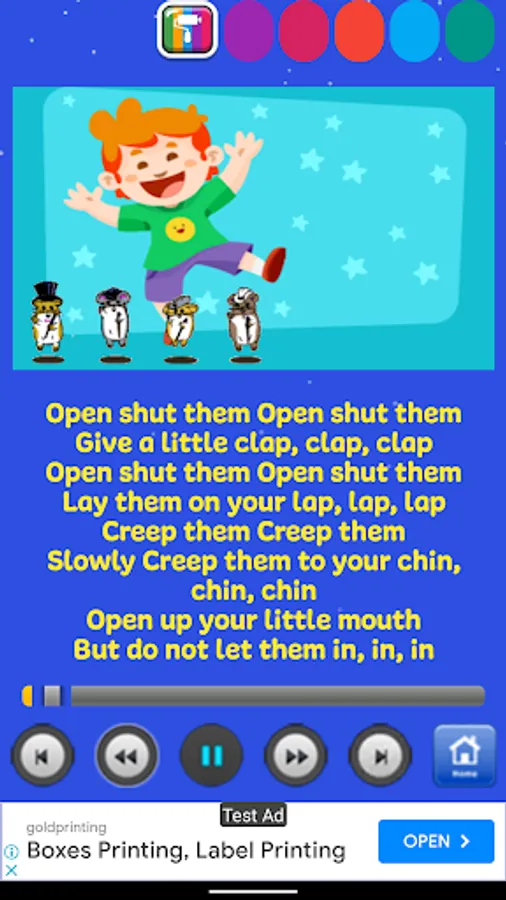 Simple interface for your child to operate. Swipe left or right to change rhymes. Improve English of your kids by Nursery Rhymes. Top Rhymes For Kids is Kids Safe, simple to handle with easy navigation. Good creatives with clear text are supported across varying android devices of length.