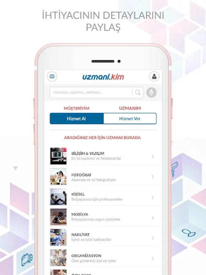 Bringing experts and service seekers together, Turkey's most affordable and easy-to-use digital marketplace is now in your palm! Download our app, come, be part of our network.