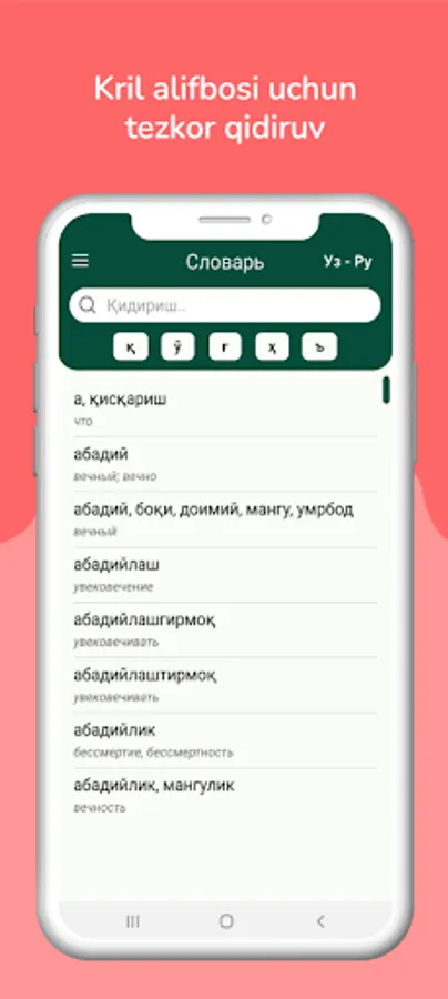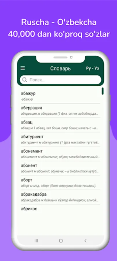 * 40,000+ ta so'zlar orasida tezkor qidiruv