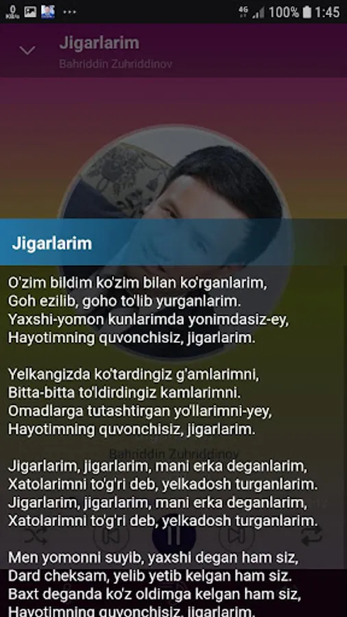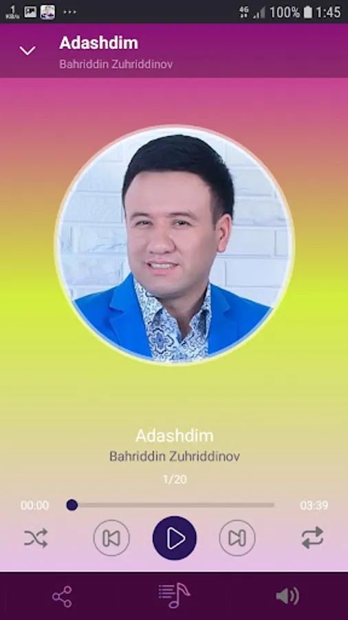 Ushbu android ilovada sevimli ijodkoringizning quyidagi taronalarini bepul, qulay va internetsiz tinglashingiz mumkin:
