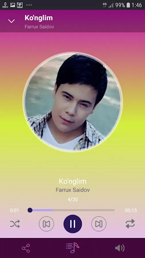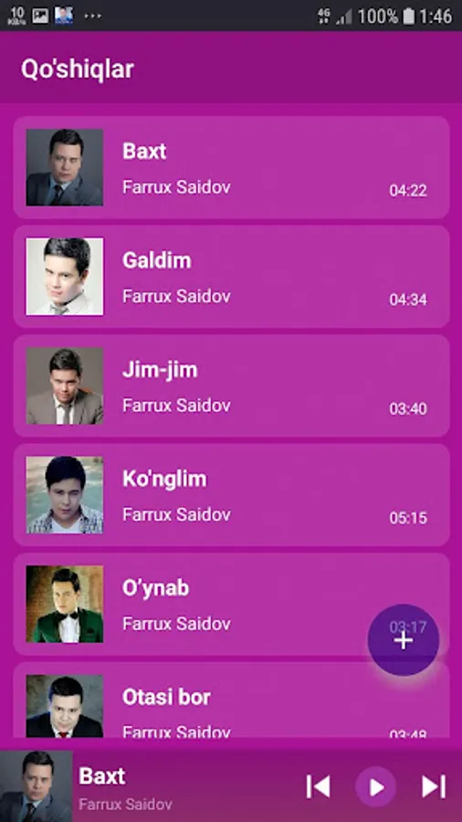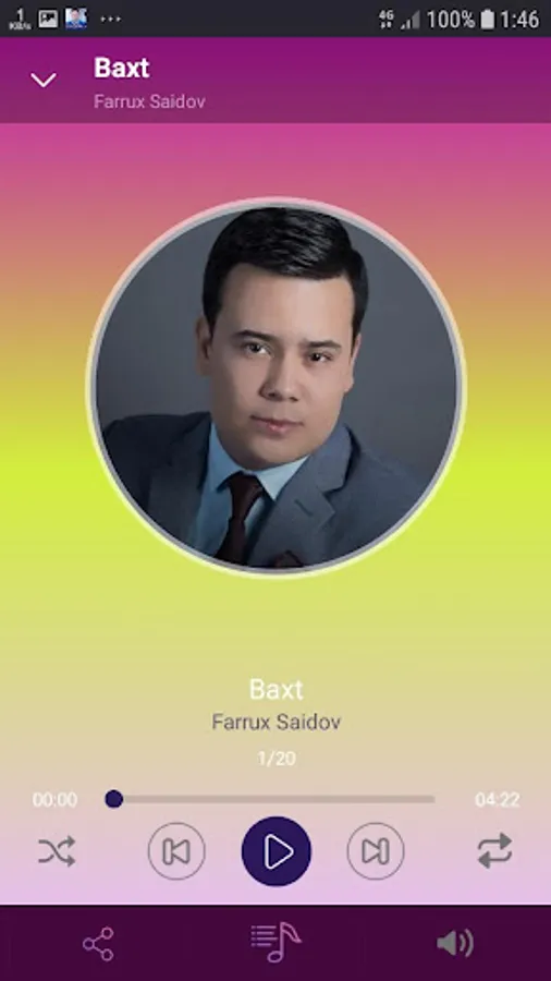 Ushbu android ilovada sevimli ijodkoringizning quyidagi taronalarini bepul, qulay va internetsiz tinglashingiz mumkin: