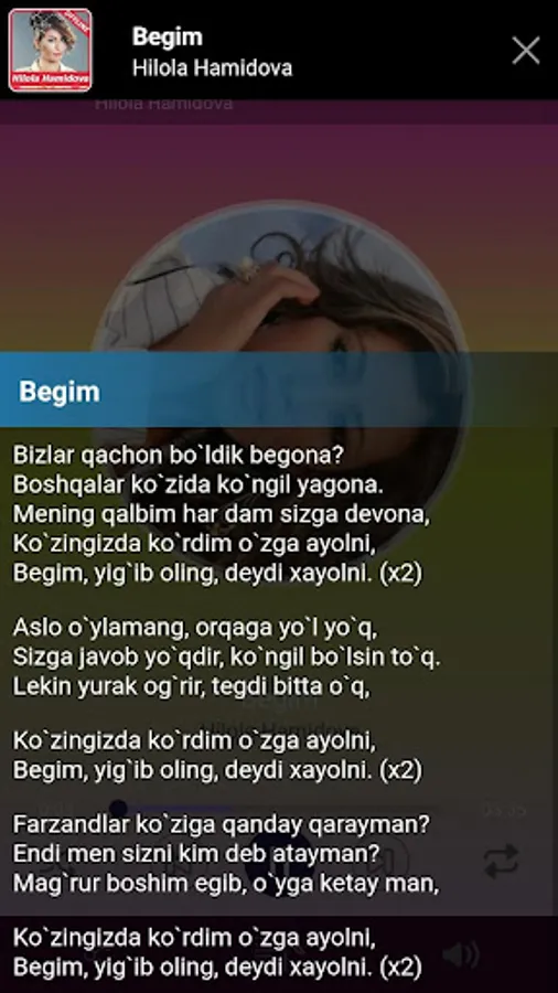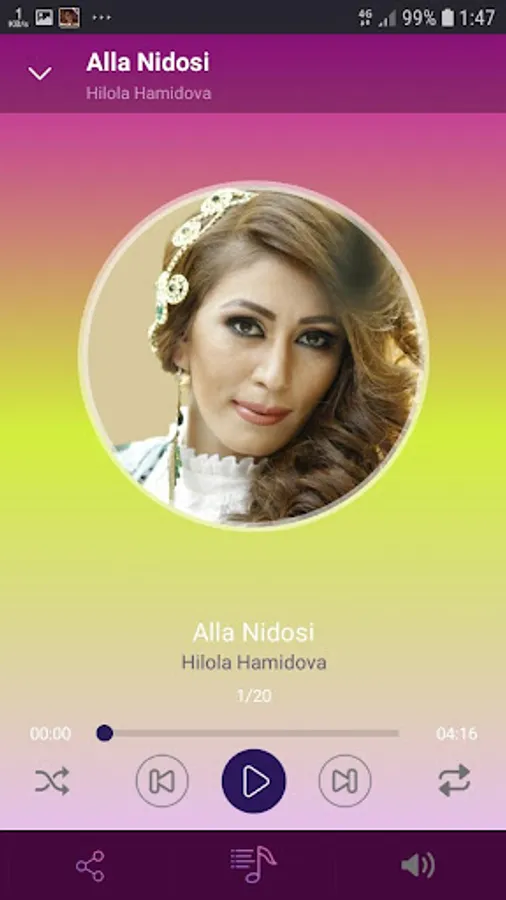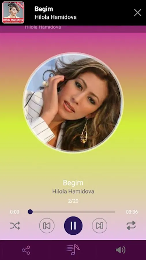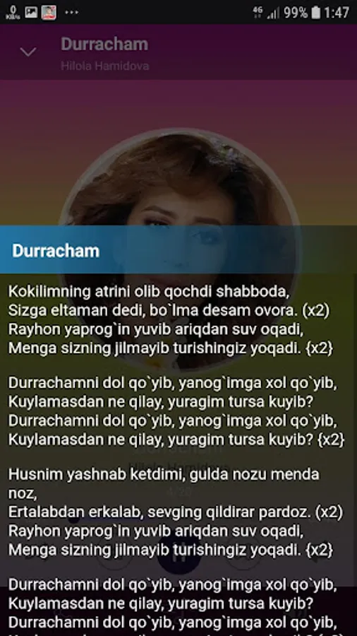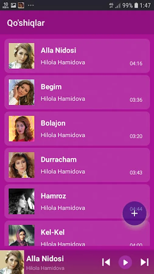 Ushbu android ilovada sevimli ijodkoringizning quyidagi taronalarini bepul, qulay va internetsiz tinglashingiz mumkin: