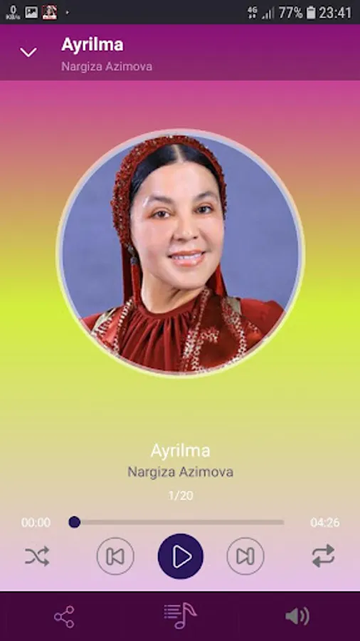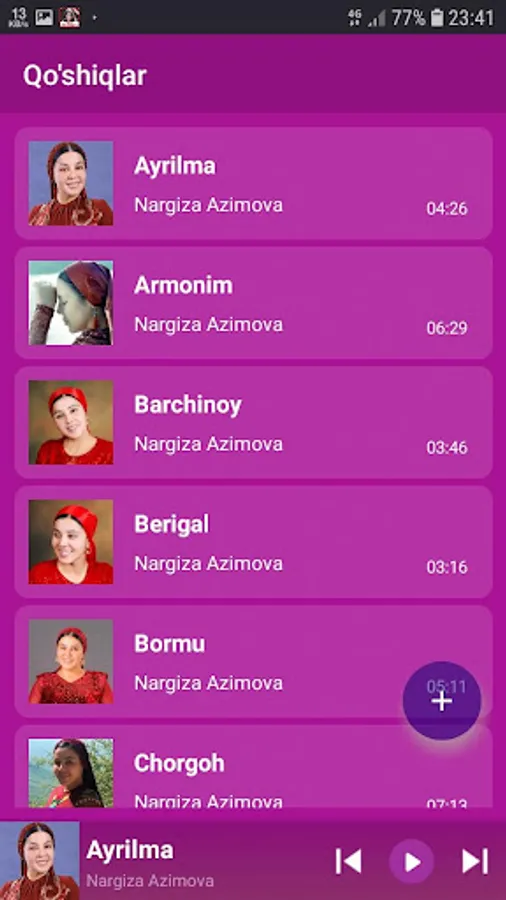 Ushbu android ilovada sevimli ijodkoringizning quyidagi taronalarini bepul, qulay va internetsiz tinglashingiz mumkin: