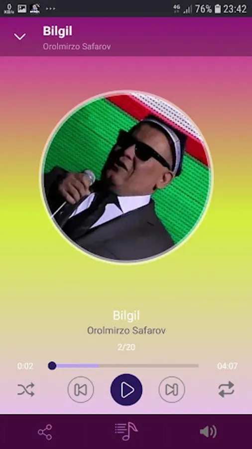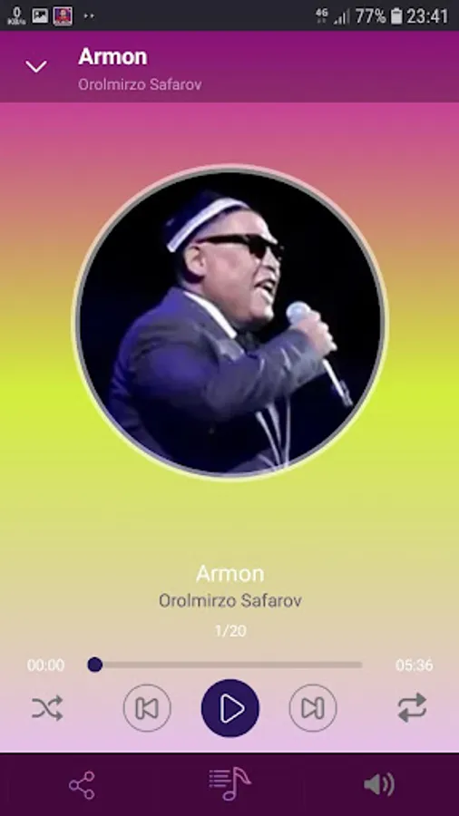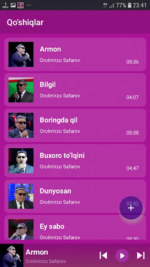 Ushbu android ilovada sevimli ijodkoringizning quyidagi taronalarini bepul, qulay va internetsiz tinglashingiz mumkin:
