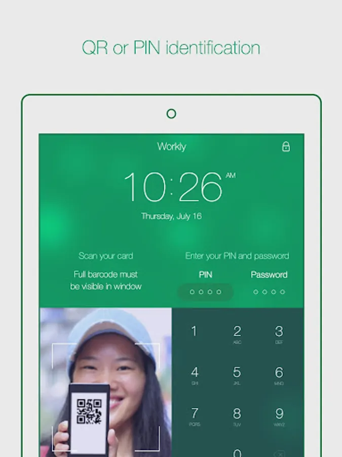 - Employees can Punch In & Out in less than a second with QR, PIN, and NFC