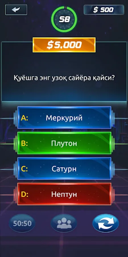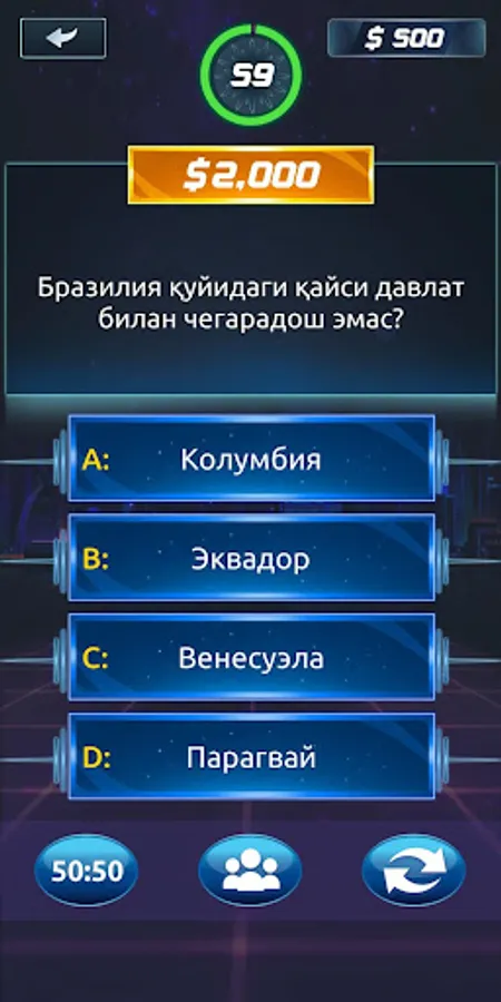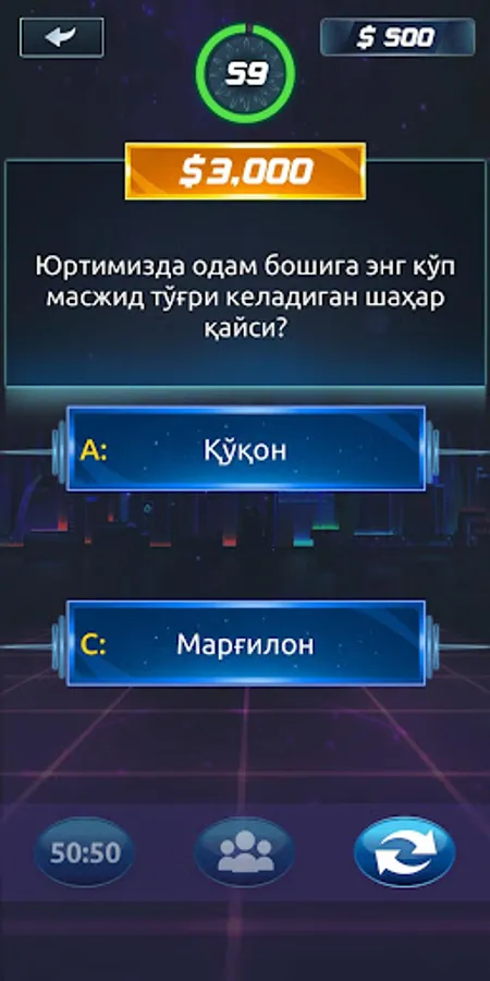 ★Noto'g'ri javob bersangiz o'yinni davom ettirish(tanga evaziga)