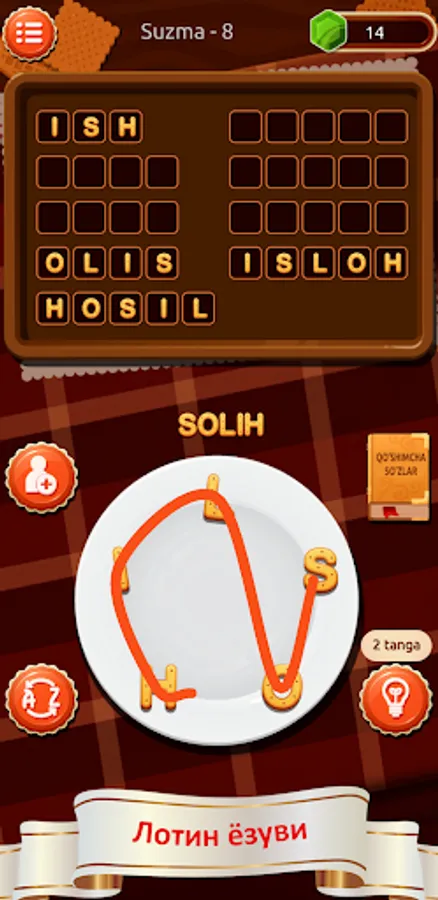 Yordam kerak bo‘lsa tangalaringizdan foydalanib harflarni oching.
