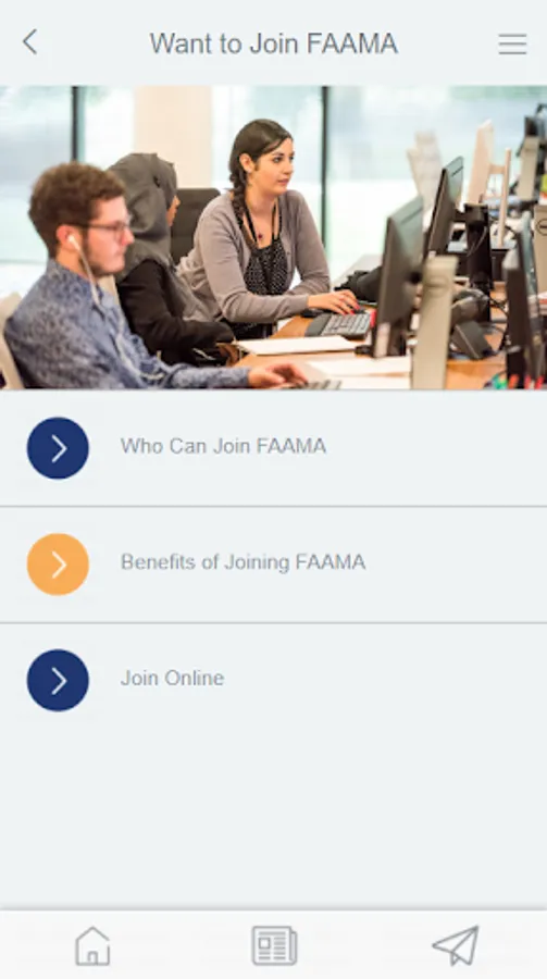 Information for both FAAMA Members and people considering joining FAAMA. The app will also be used to distribute information during the FAAMA Annual Convention to the attendees. The app includes information from the FAAMA Website as well as the different social media presences of the association.