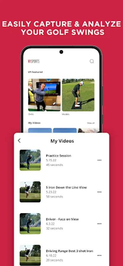 V1 GOLF app, the ultimate golf swing analysis app designed to transform your golf swing. Master your golf swing by studying our video library of golf tips, lessons, and drills, and then keep track of your progress by using our cutting-edge golf swing analyzer.