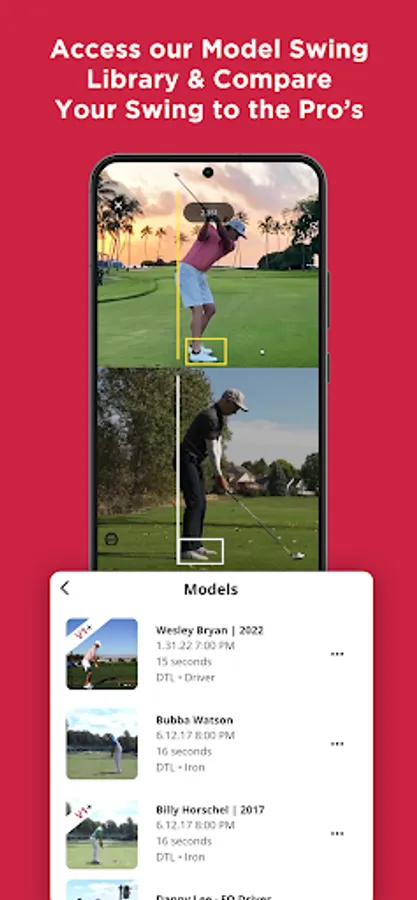 Boost your game with V1 GOLF’s overlay & compare tools that allow you to compare your golf swing directly to the pros. Gain unprecedented insights by comparing your technique side-by-side with leading professional golfers.