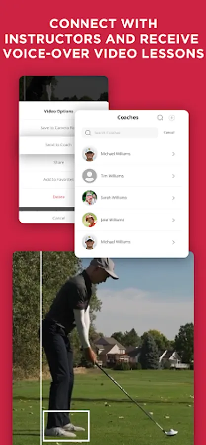 Use your V1 GOLF app to connect with your golf instructor (who uses V1 Instruction software) and send videos of your swing for review, and receive swing analysis lesson videos. All lesson videos will be automatically saved under your V1 GOLF account for future review and progress tracking.