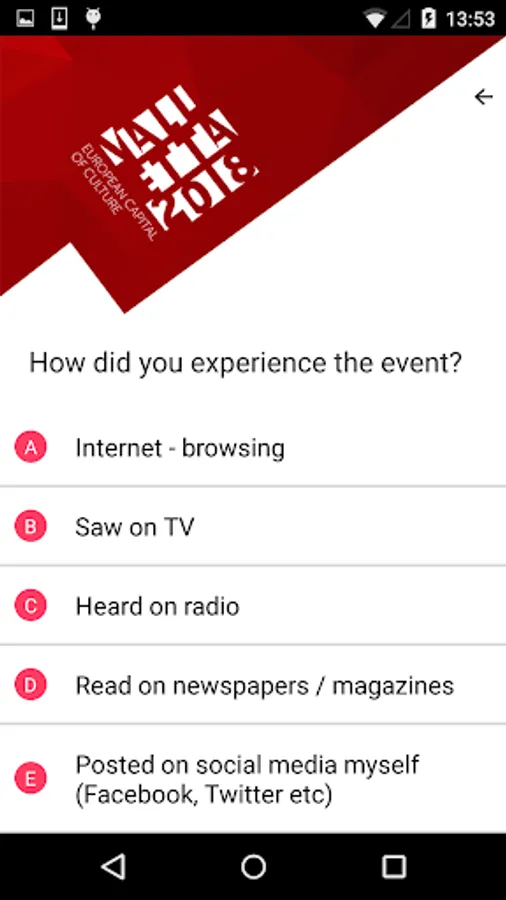This app is designed specifically for brand research only and has no commercial or entertainment value. Using this app requires no fees but involves prior registration with Valletta 2018 Foundation. Only registered users can use all the features of this app, helping in our research about how individuals engage with cultural brands."
