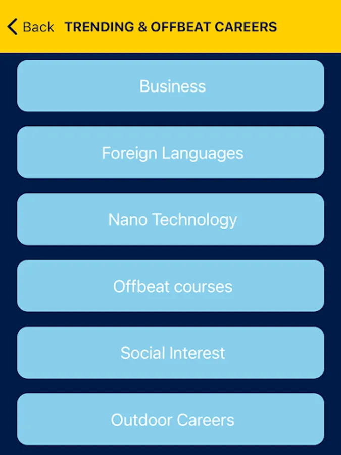 Career means the part of life that is concerned with employment. Career Guide App to help you to know information about different career options to choose the right Career Path after +2. Career Guide app also provides detailed information for students choosing Engineering, Medicine, Law, Design, Arts, Commerce, Diploma, ITI , CA, Teachers Career, Law Careers, Other entrance exam and Management.