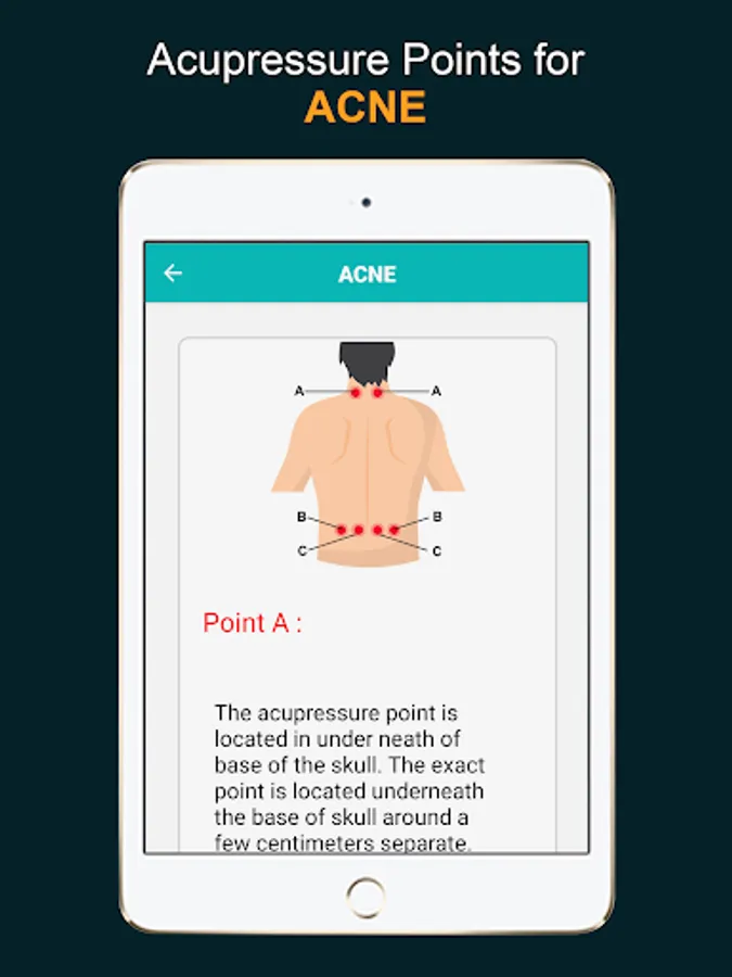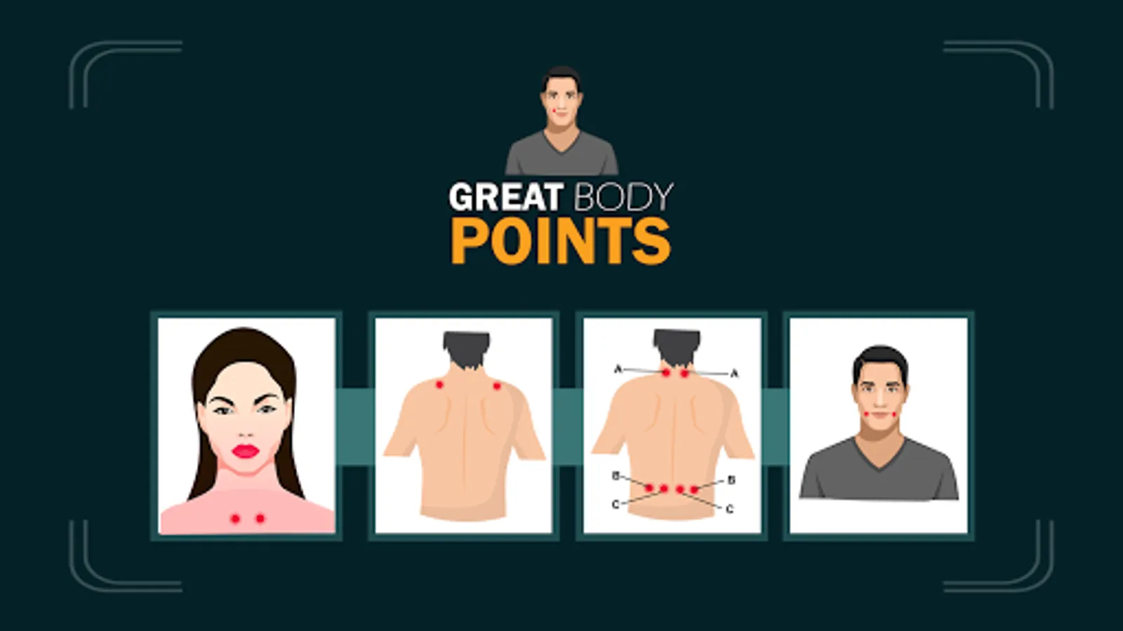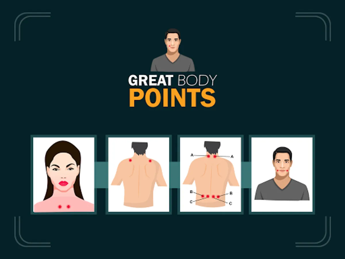 with our Body Points app you can follow simple 4 Acupressure points on your neck and shoulder to certain sensitive areas of the body for relief