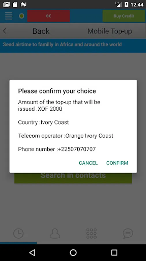 With our application, call Africa in a few clicks and offer your family mobile and internet top-ups at no cost: