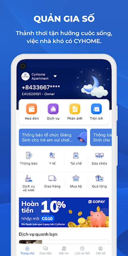 CyHome application belongs to the smart apartment ecosystem CyHome developed by CYFEER JSC, assist residents in communication with Building Managers and the Resident Community. The resident can access and use all kinds of services inside and outside the apartment easily with the best quality and pricing.