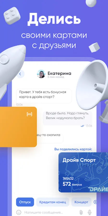 • Discount, discount, accumulative or bonus cards: you can add existing or issue new ones right inside the application on your phone. No need to go to the store, fill out long questionnaires and wait