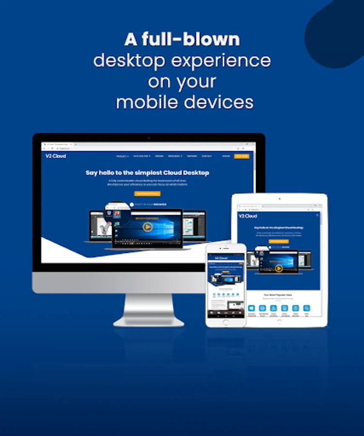 With the V2 Cloud Mobile App, you can keep using your Cloud desktop on your mobile devices. Experience a seamlessly desktop experience on your smartphone or tablet and stay productive on the move.