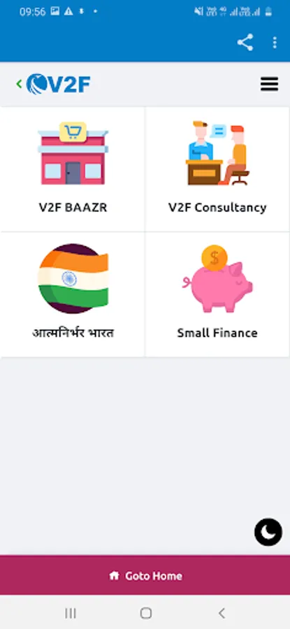 V2F Group is a group of different businesses like V2F Bazaar, V2F Consultancy, V2F Small Finance and many more. This App is promoting AATMNIRBHAR BHARAT.