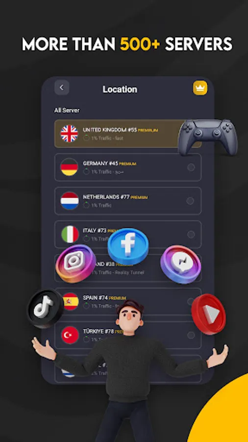 All our VPN servers are located in the best European and Asian data centers and have high speed and power