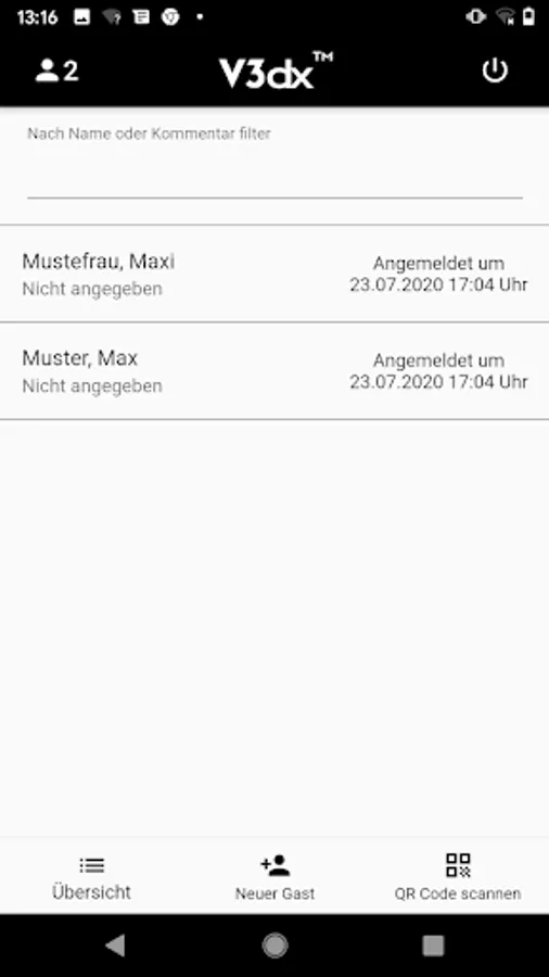 • Compliance with the information on the legally required registration list, which is stored locally solely for the purpose of providing information to the health department or the local police authority in accordance with §§ 16.25 IfSG.