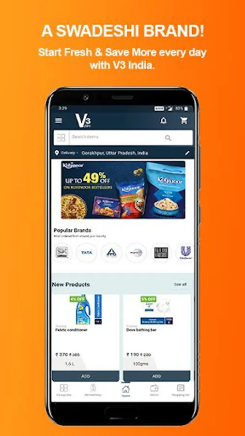 V3India is an e-commerce venture that provides food staples and household items at your doorstep. Ondoor is established with a motto - ‘Create value for our customers to build an ever-lasting relation’. Grocery, vegetables, fruits, household items, personal care products and anything needed in a household on day to day basis. Unbeatable prices and discount with fast and timely home delivery.