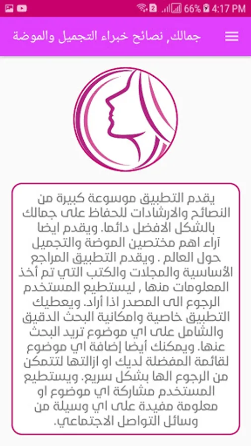 The application provides a large encyclopedia of tips and instructions to keep your beauty in the best way always.