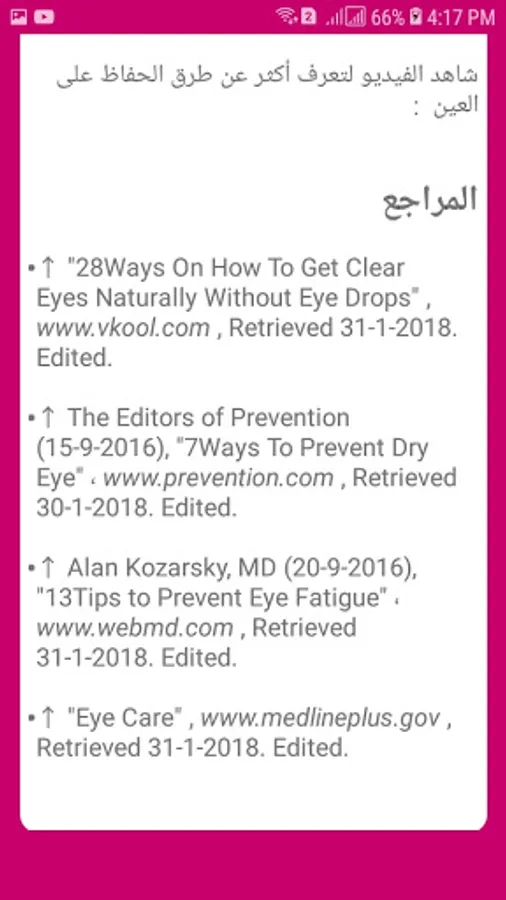 The application provides basic references, magazines, and books from which the information was taken, so that the user can refer to the source if he wants.