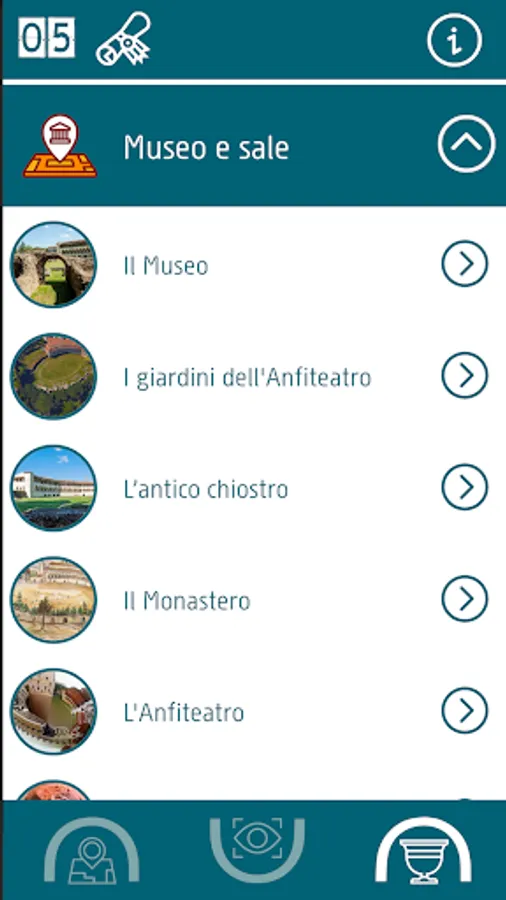 With the Archive function, you can review all the contents on the history of the amphitheater, the museum and its collections, listen to the tales of the Of Heroes, Men and Gods route, and read the information schedule of the #ZICH Path.