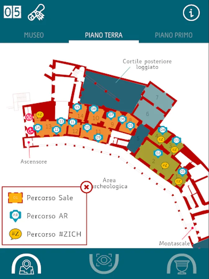 With the Map function you can explore the museum, the amphitheater and its rooms, as well as locate the additional stages of the AR Path and the #ZICH Path. Turn on Bluetooth and the app will show you where you are!