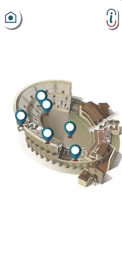 - The scale Amphitheater: by pointing the room towards any flat surface, the scale model of the Amphitheater will appear for an overall view in 3D.