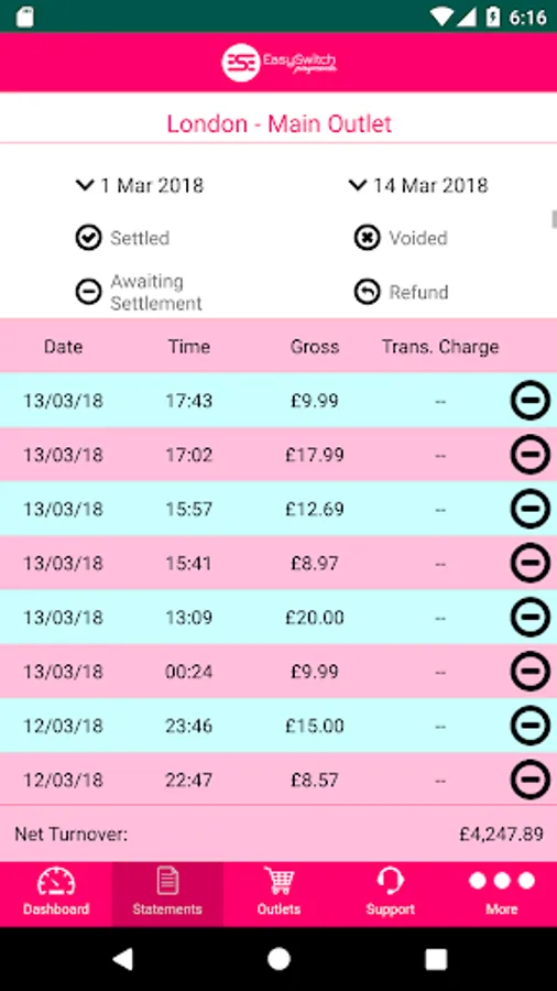 The App enables you to monitor your card transactions in real-time. It gives detailed information on transactions that are pending and have paid to your bank account so you are fully up to date as to when your payments will arrive.