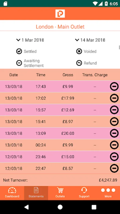 The App enables you to monitor your card transactions in real-time. It gives detailed information on transactions that are pending and have paid to your bank account so you are fully up to date as to when your payments will arrive.