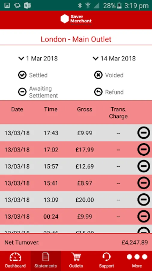 The App enables you to monitor your card transactions in real-time. It gives detailed information on transactions that are pending and have paid to your bank account so you are fully up to date as to when your payments will arrive.